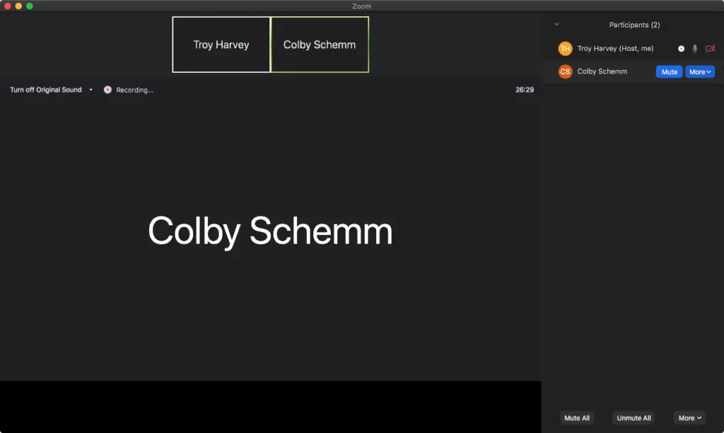 Everyone should start recording and “Turn on Original Sound” at this point. At this point you want to run through a quick checklist before you start the interview.