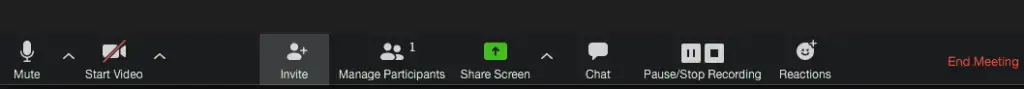Click the “New Meeting” button to get started. This will launch the Zoom video chat, and you will see an overwhelming set of controls. So take a minute to just look around at the different controls. Where is the mute button? Where is the camera toggle? Open and close the chat panel. Knowing where the controls are in advance will make you a better host in the middle of your interview.