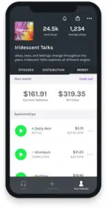 Anchor will send the user an email when sponsorship is available. The sponsor generally provides the talking points, so all you have to do is record the advertisement in the Money tab, choose where to drop it in the episode, and get paid for it. The revenue generated by listeners is described as CPM (cost per mile). Each mile is defined as 1 mile per 1000 listens. The sponsor generally decides how much each mile is worth. Anchor takes a 30% stake of all ad revenue generated when using Anchor Sponsorships. Lastly, they also use Stripe for secure payment deposits which will take a .25 cent fee each time you cash out your wallet.
