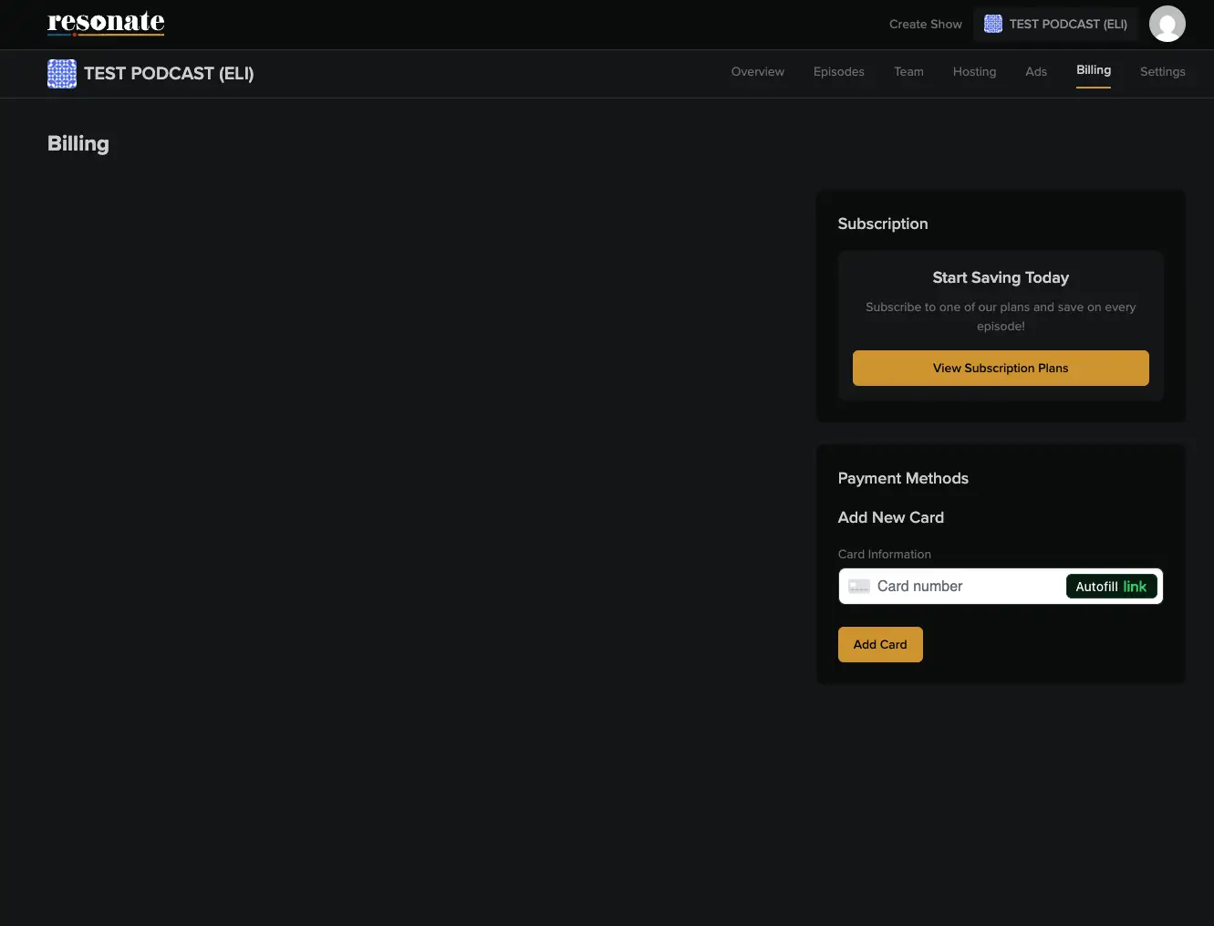 Go to billing & add your card information under payment methods.