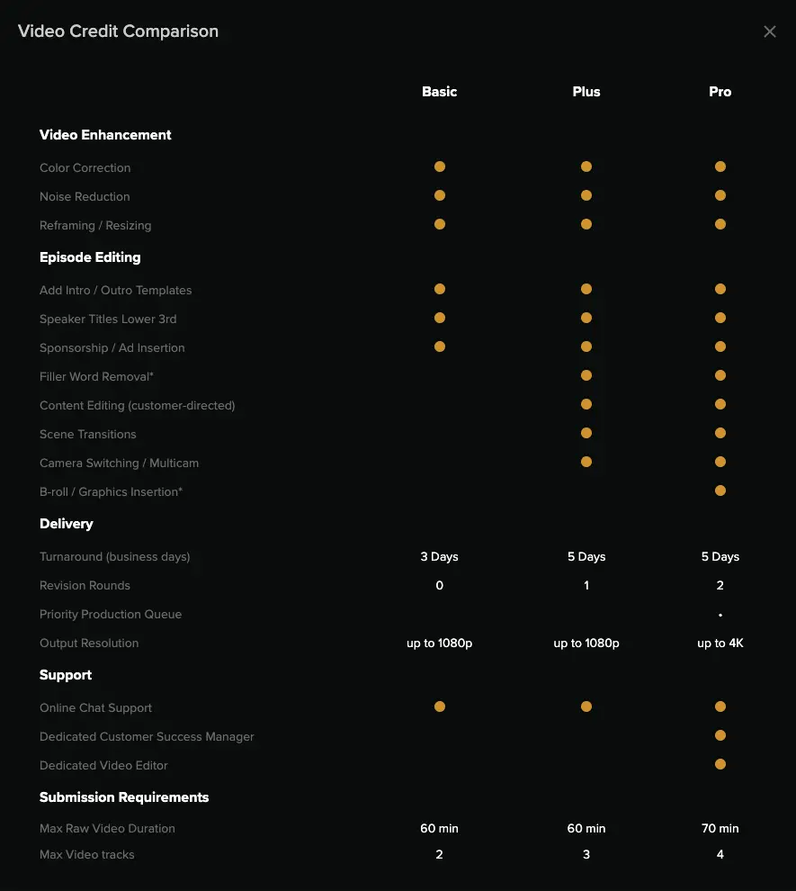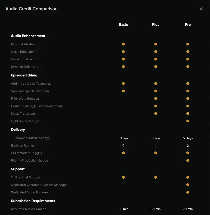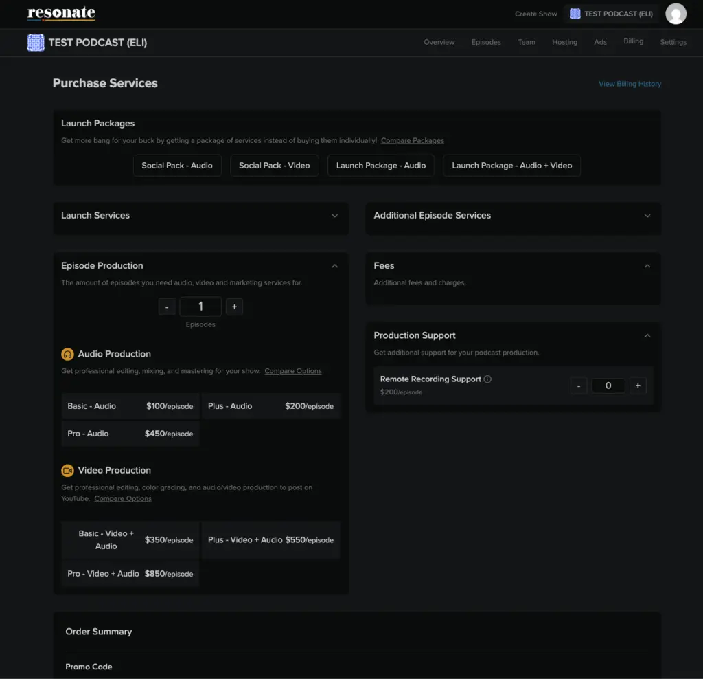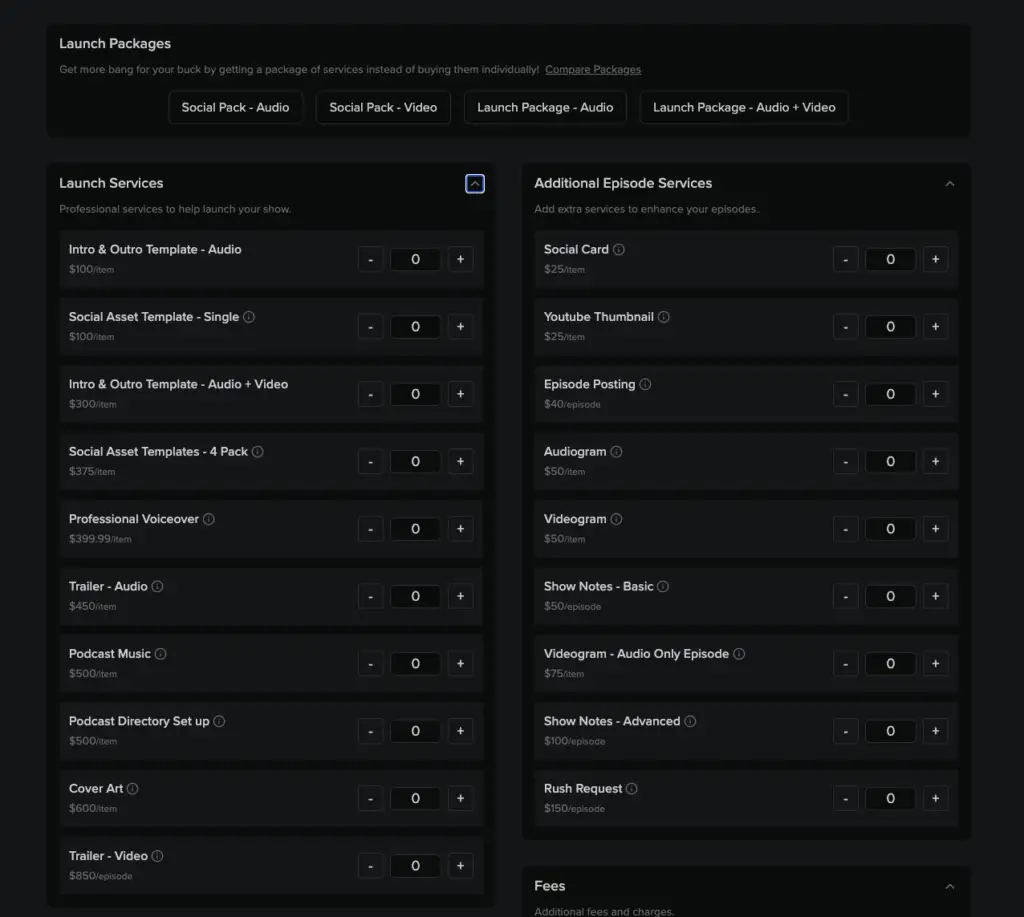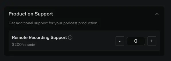 Select the total number of episode credits you want to purchase. You also need to decide if you only need audio production or if you’d like both Video and Audio Production.