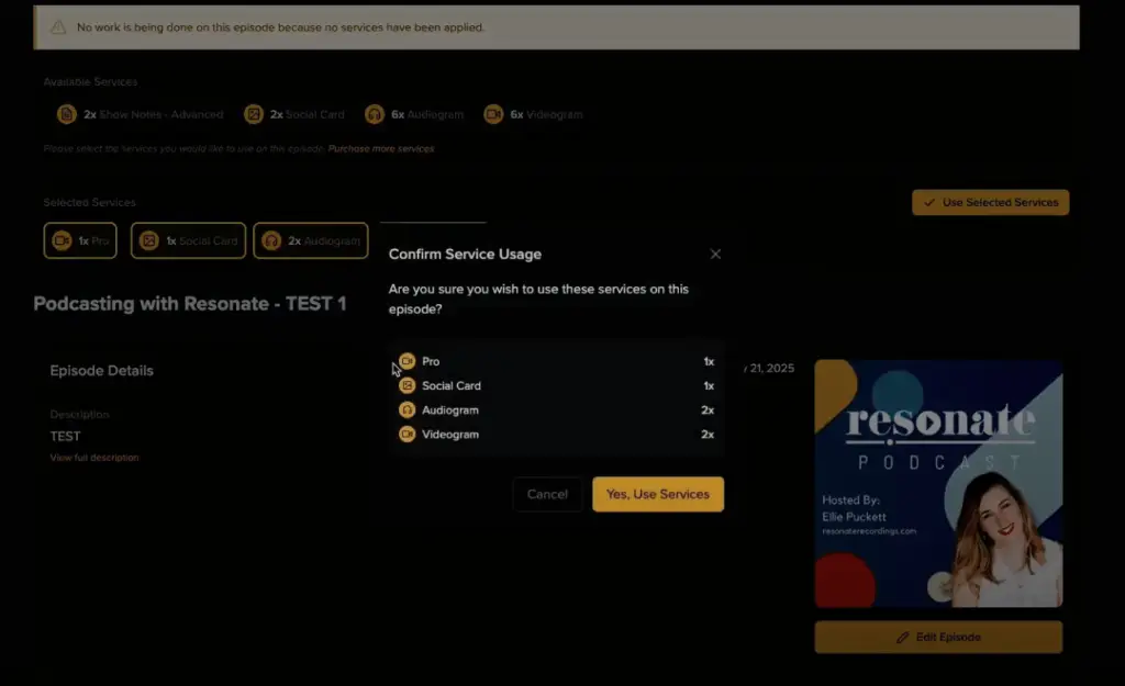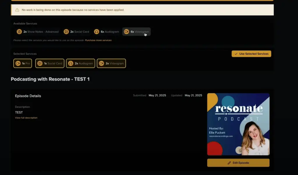 Select what services you want to apply to this episode and hit ‘Use Selected Services’