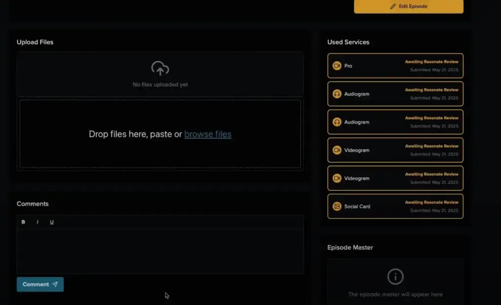 Once everything has been approved, your completed episode will show up under ‘Episode Master’.
