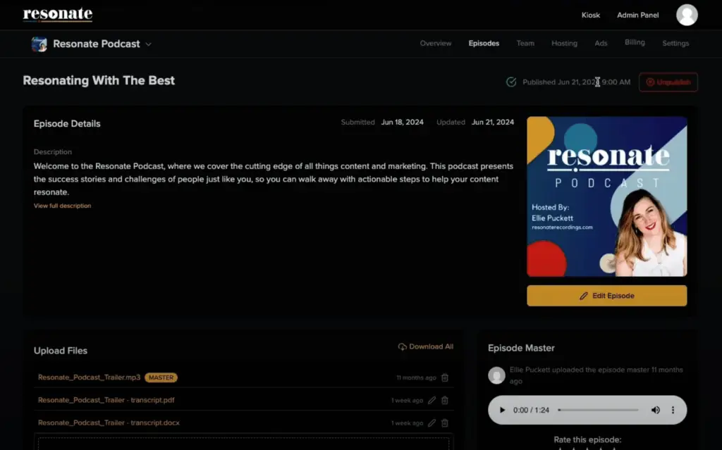 Make sure to also select ‘Episode needs editing’ if further edits need to be made. Once done. Hit ‘Create Episode’